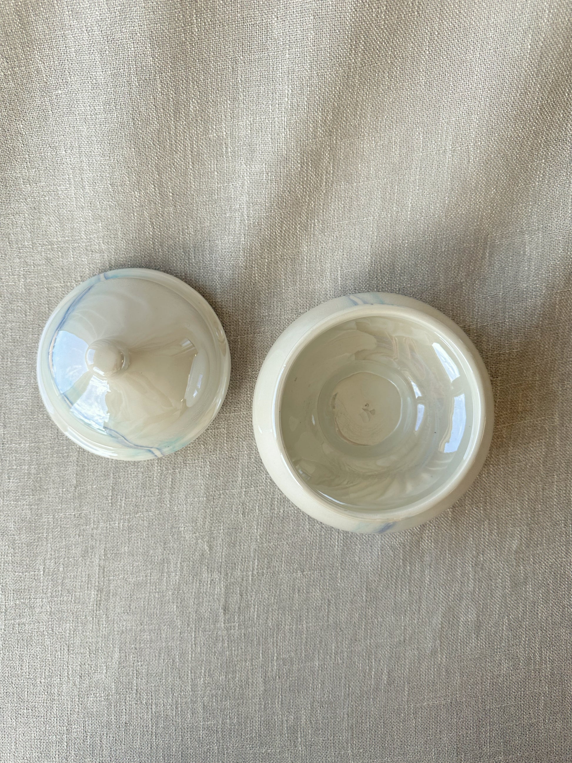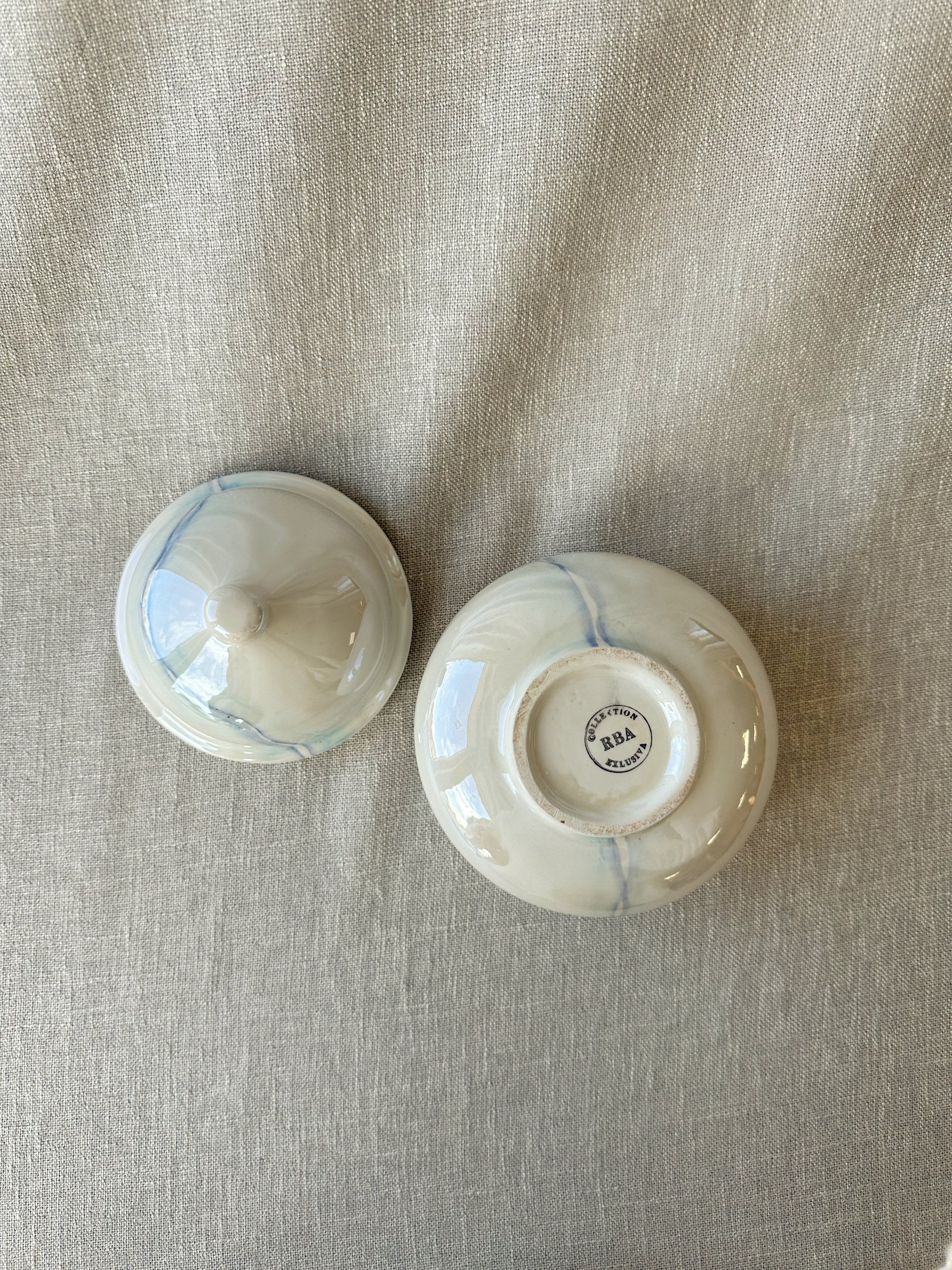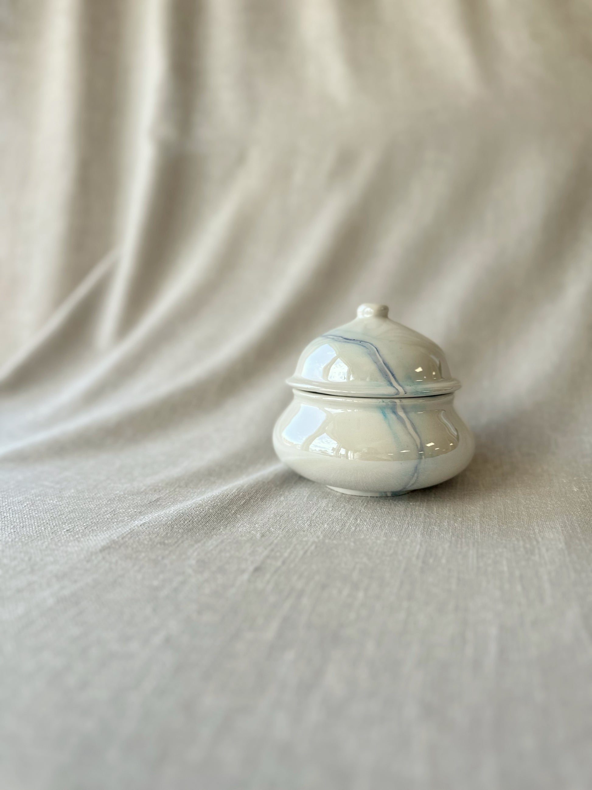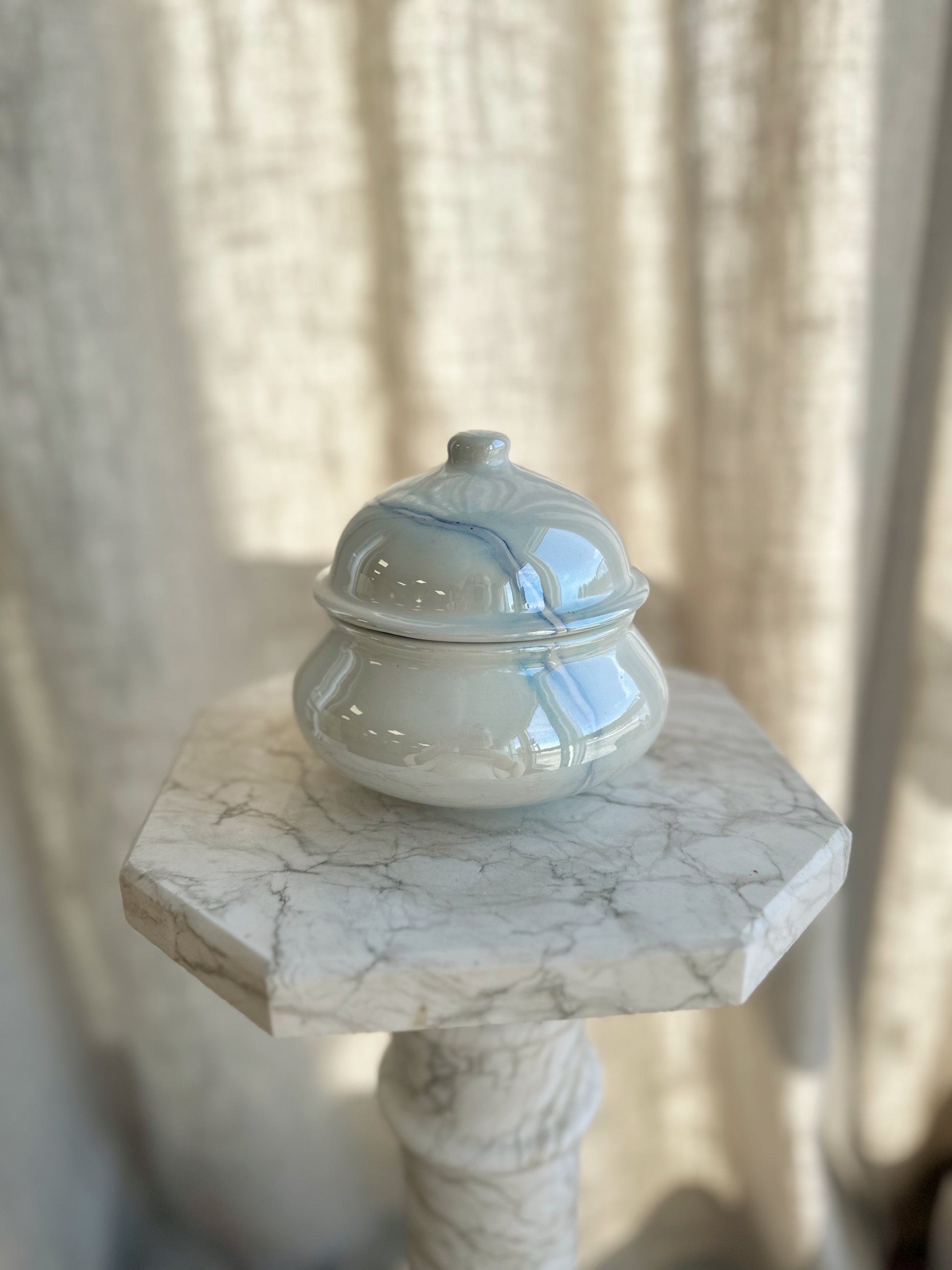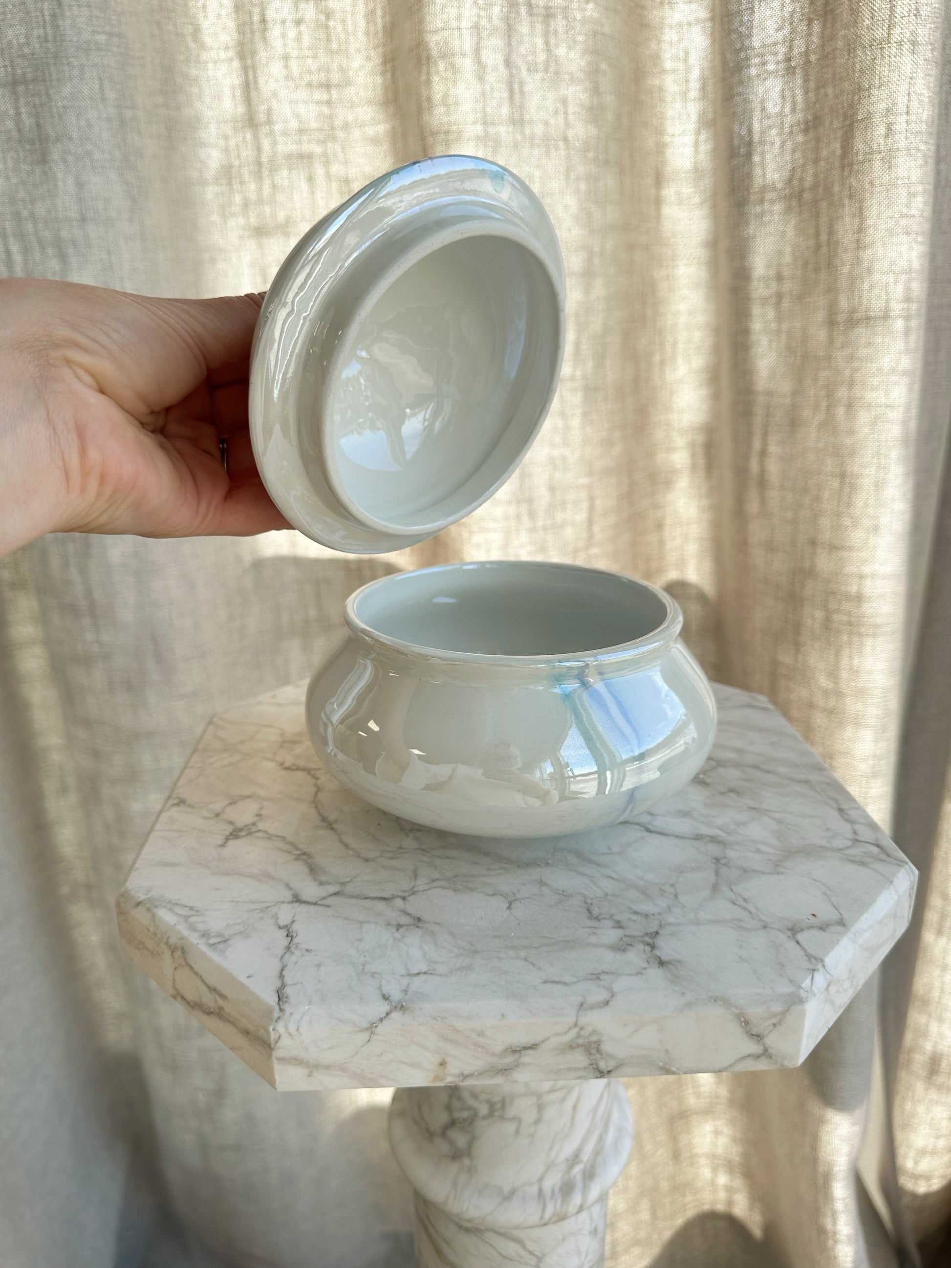 Underbart vacker ask i porslin. Storleken är ca 13 cm hög och 14 cm i diameter.
