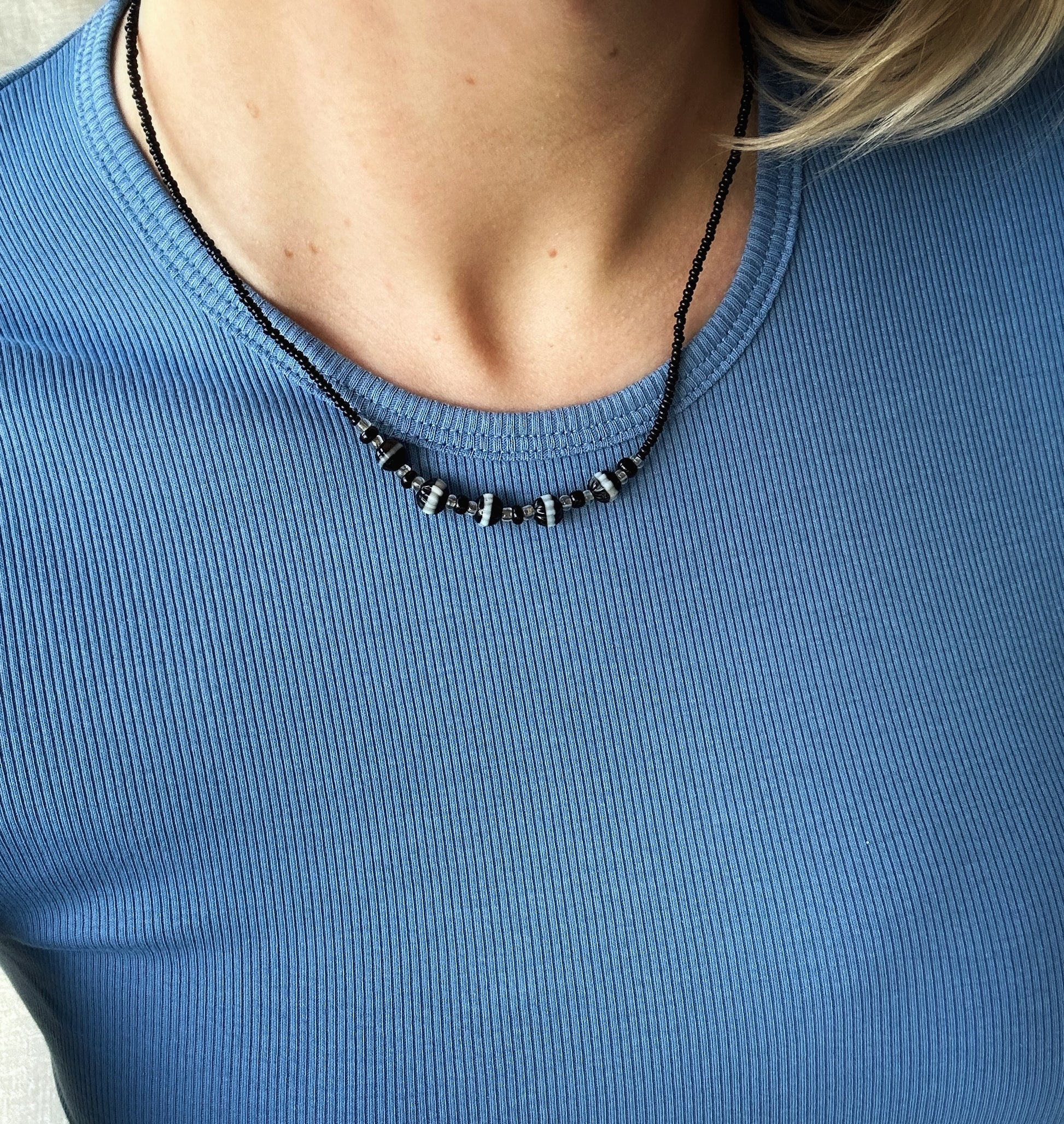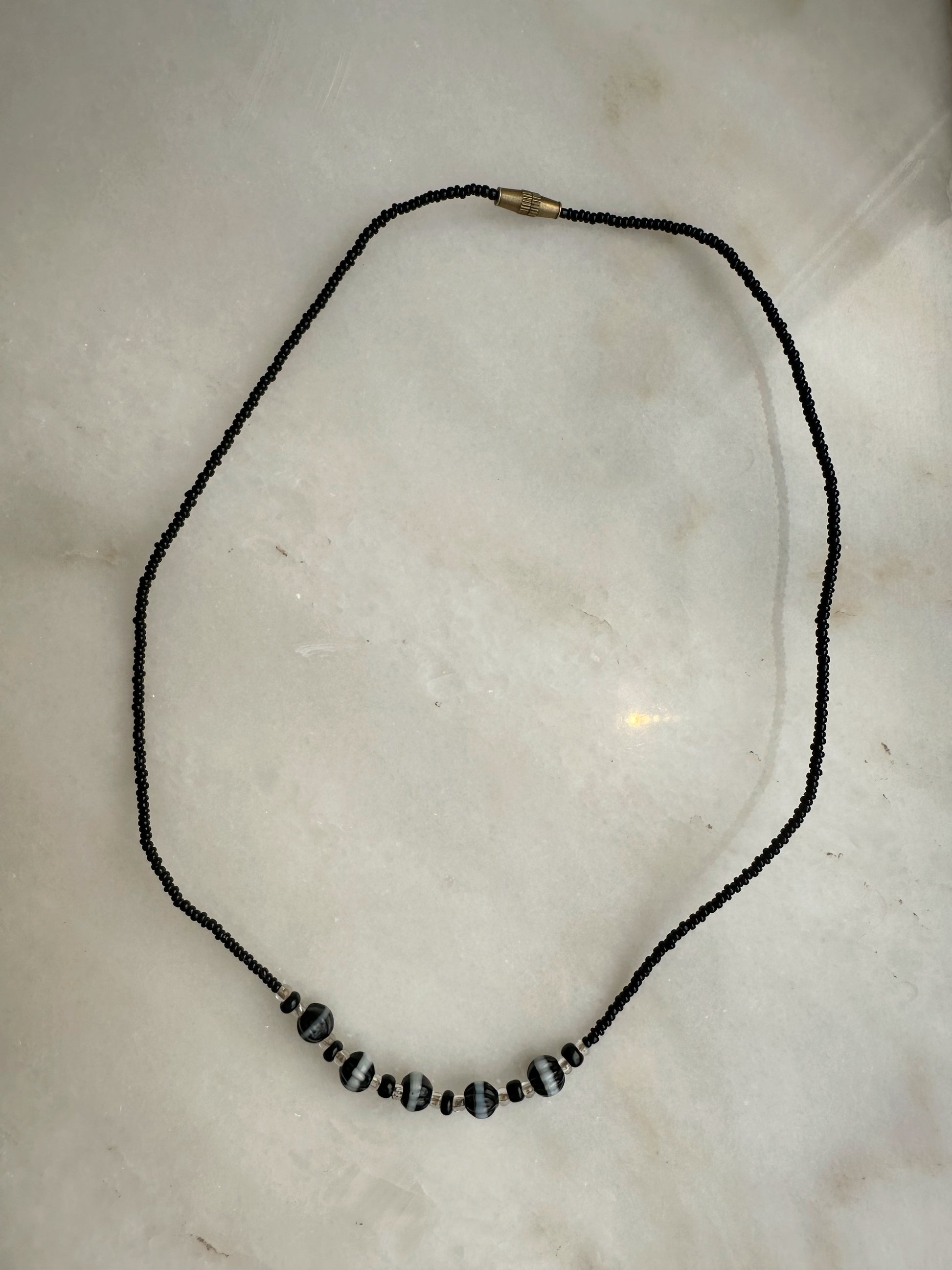 Fint vintage halsband med svarta pärlor. Supersnyggt till en enkel t-shirt och jeans. 46 cm i omkrets.
