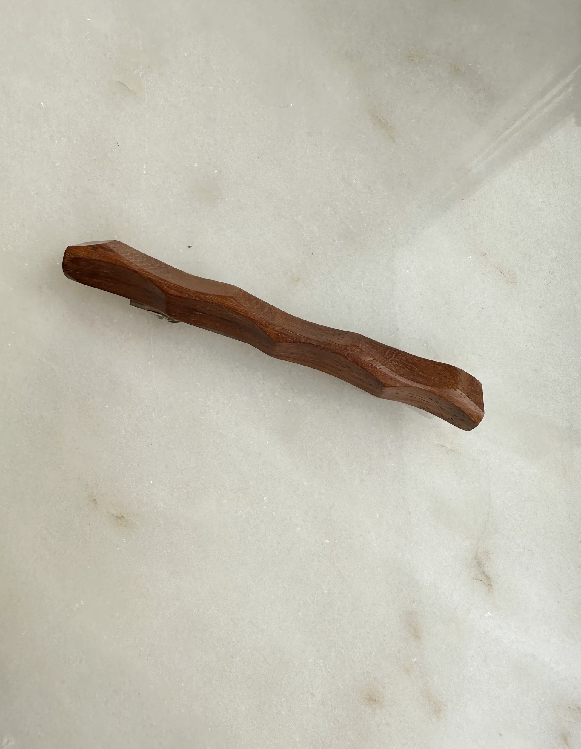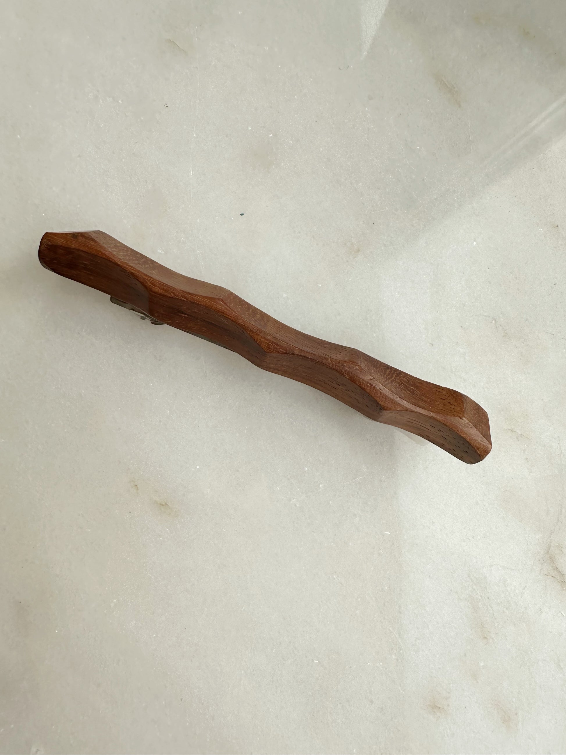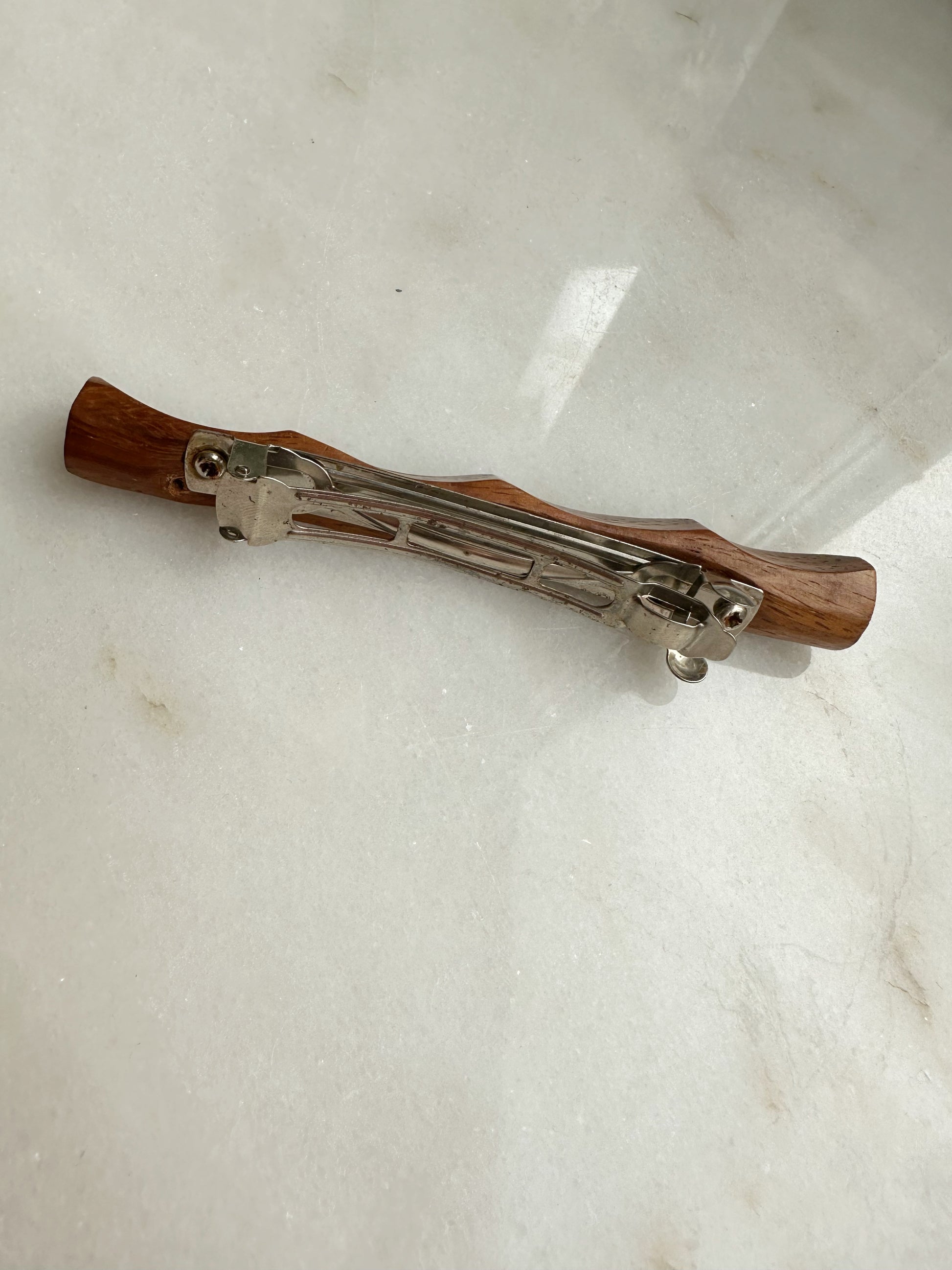 Snyggt hårspänne i trä. Bredden är 11 cm och ca 1 cm högt.