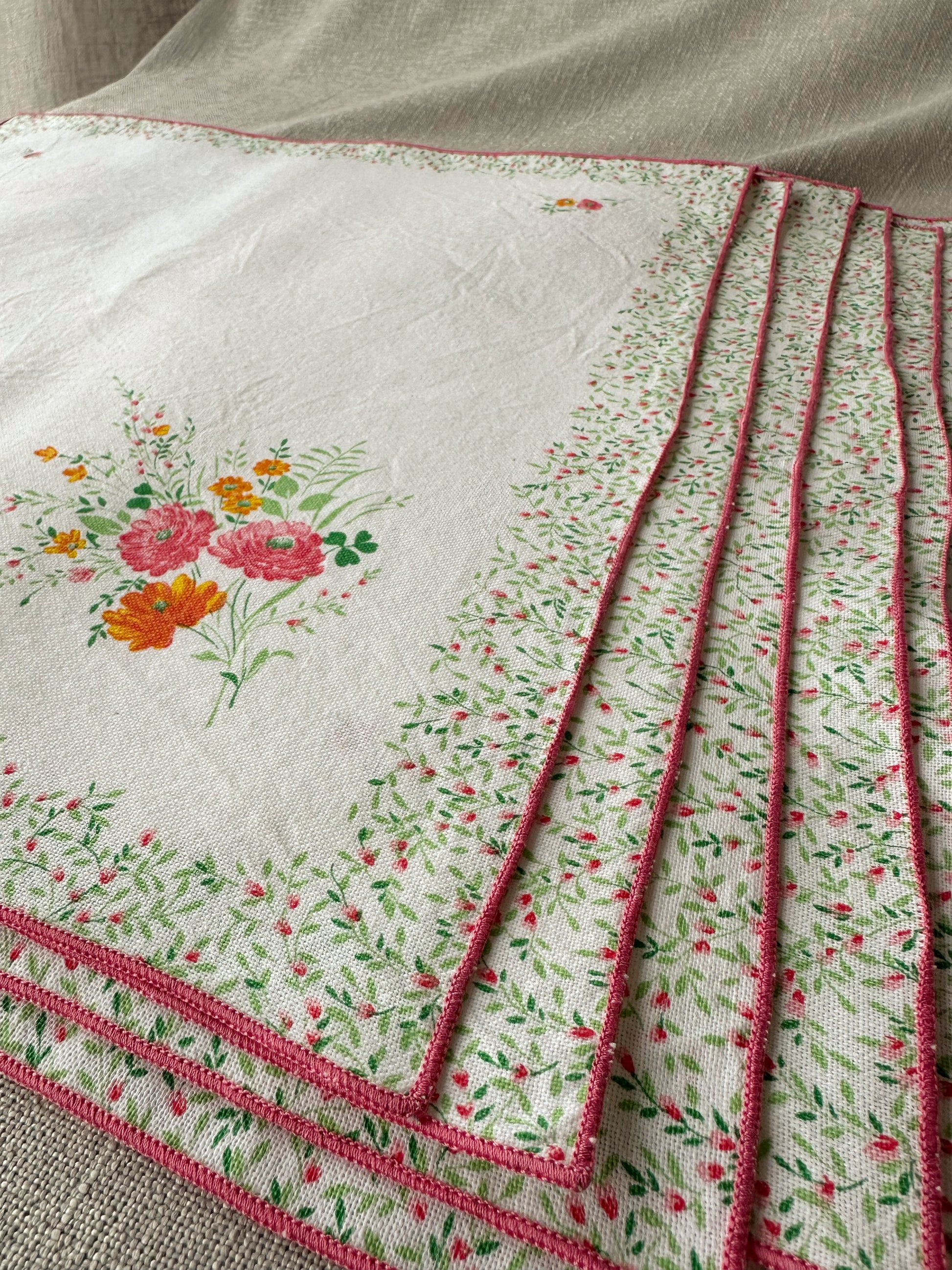 Set om 8 st underbara helt oanvända vintage servetter från Italien. Endast uppackade ur sin originalförpackning och tvättade av mig. 100% bomull och kan tvättas i 60 grader. 44x41 cm i storlek. Finns en duk som matchar som säljs separat.