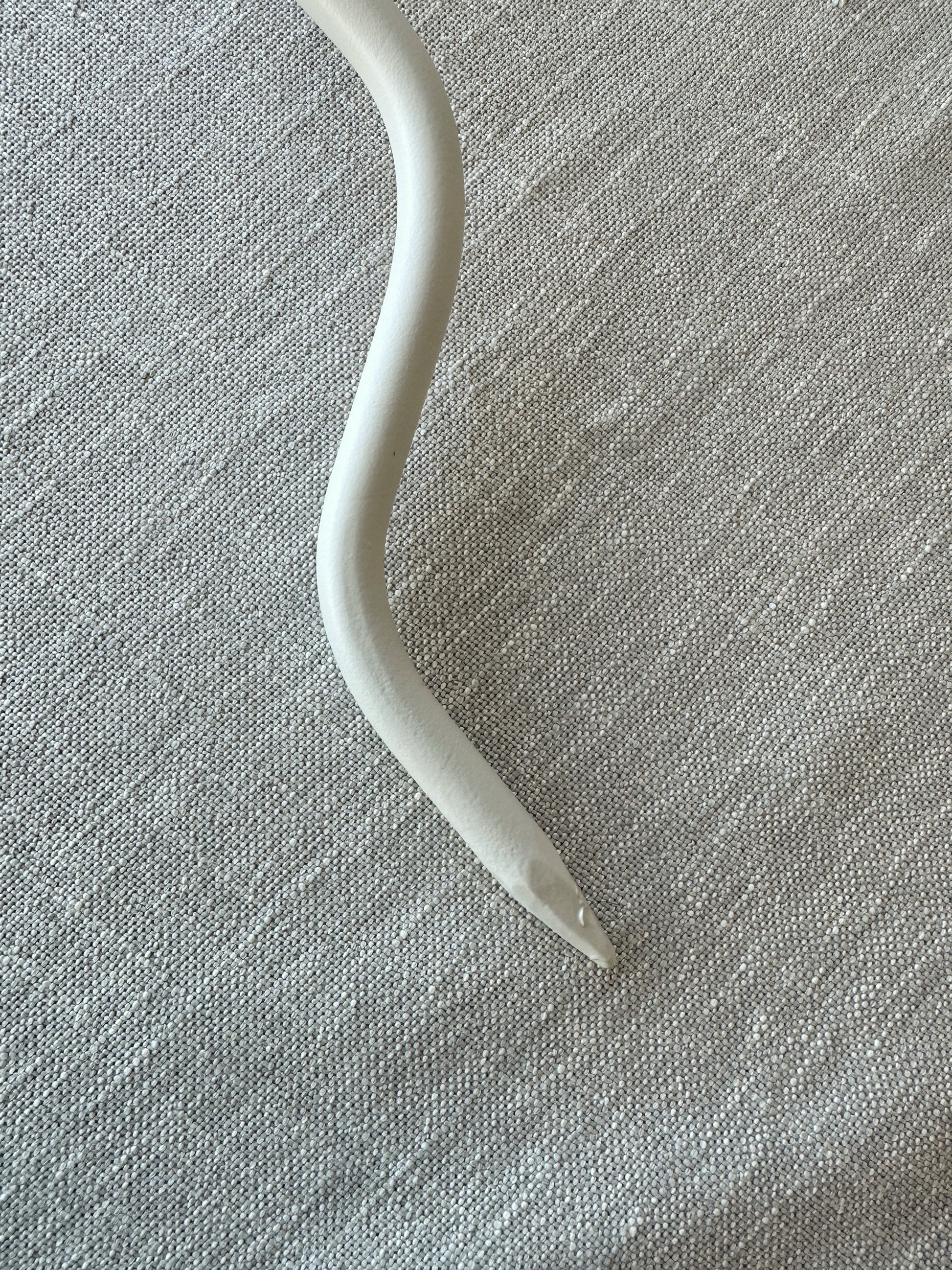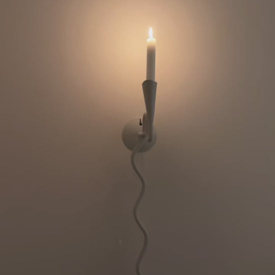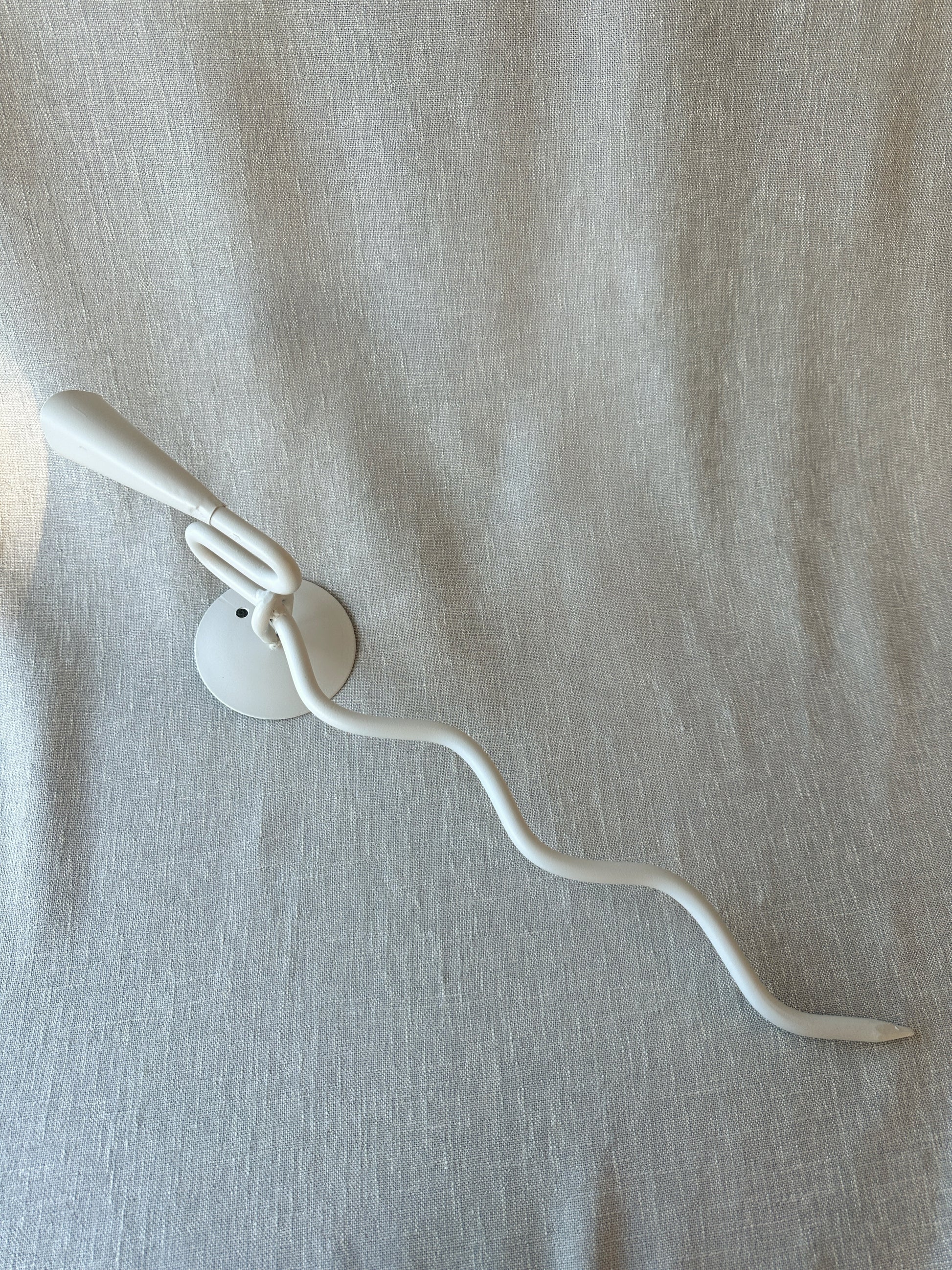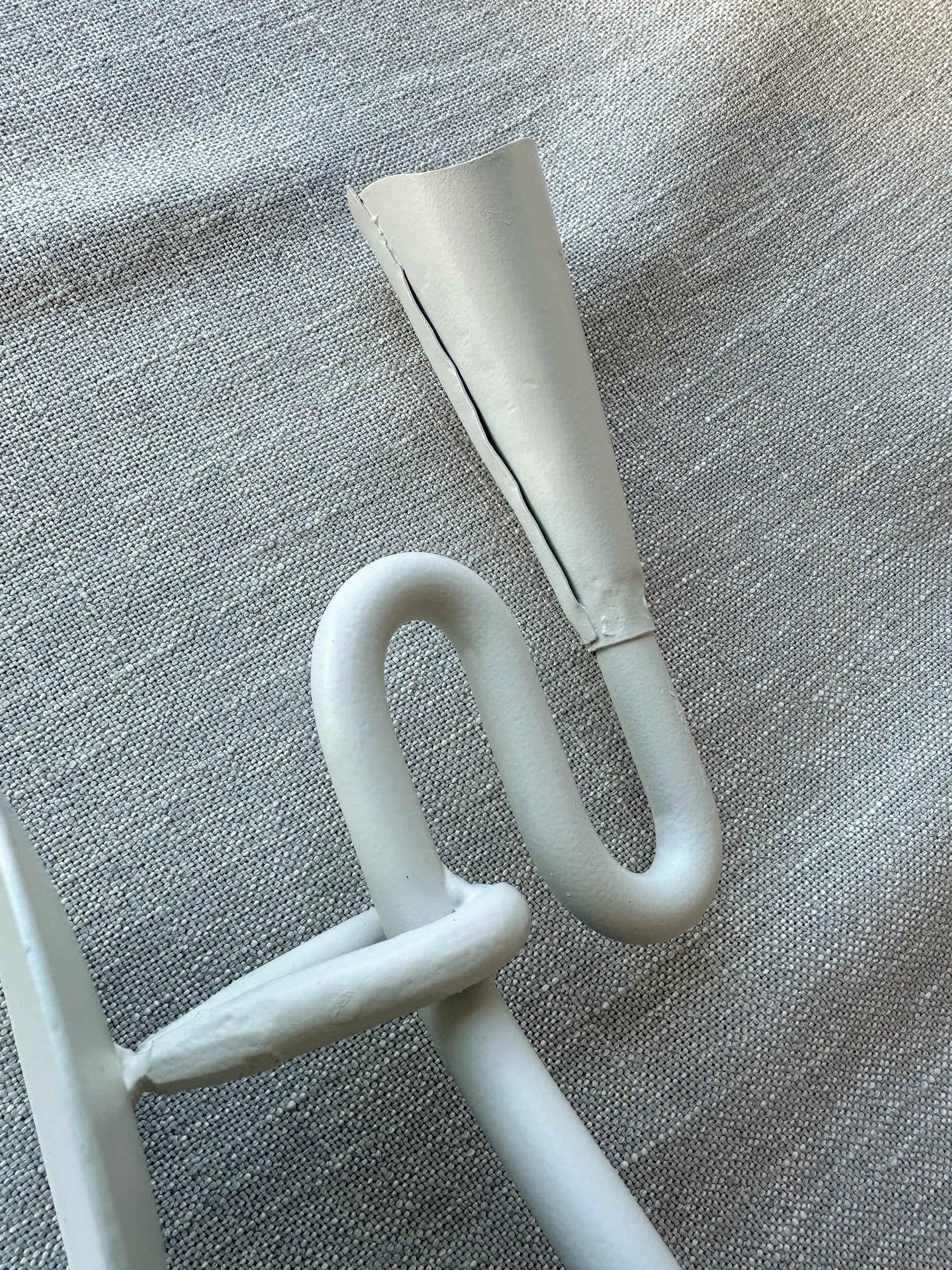 Vacker ljuslampett i smide måls i en ljus gråberget nyans. Storleken är 57 cm från topp till tå. En riktigt vacker pjäs!