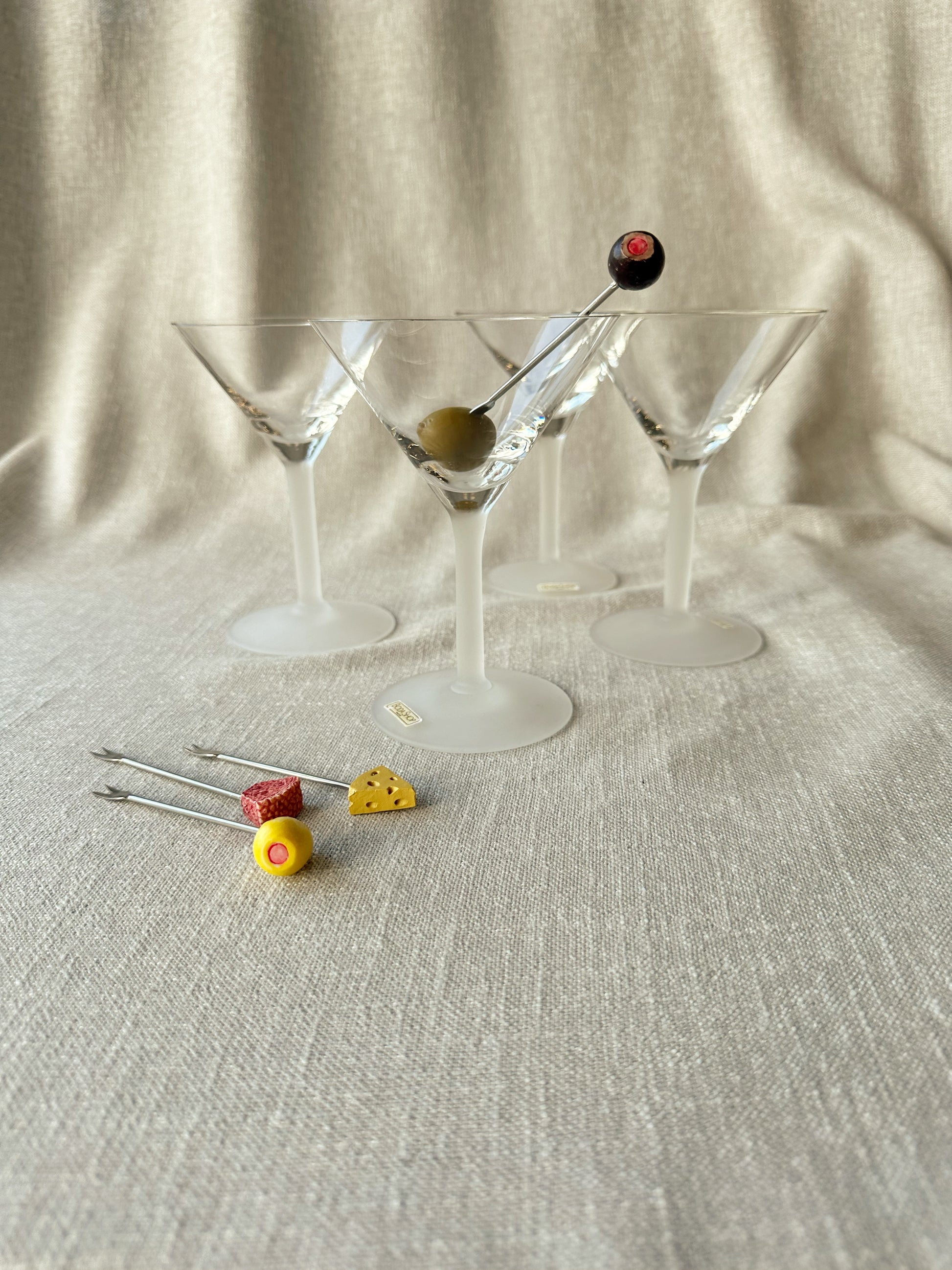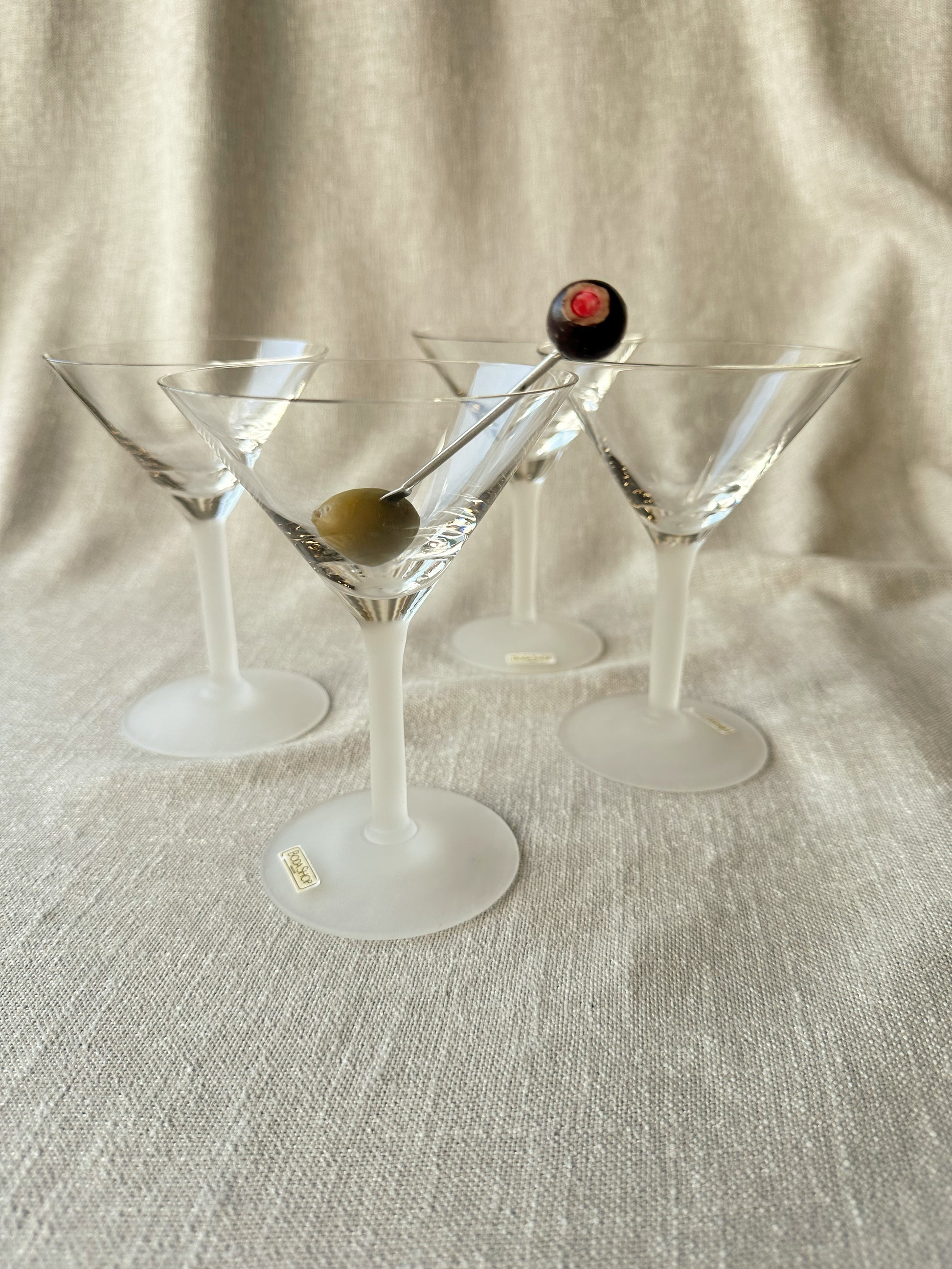 Helt otroliga martiniglas formgivna av Signe Persson-Melin för BodaNova, 80/90-tal. Superfint skick, några med etiketter kvar. 14 cm höga och 10,5 cm i diameter. Säljs i set om 4 st.