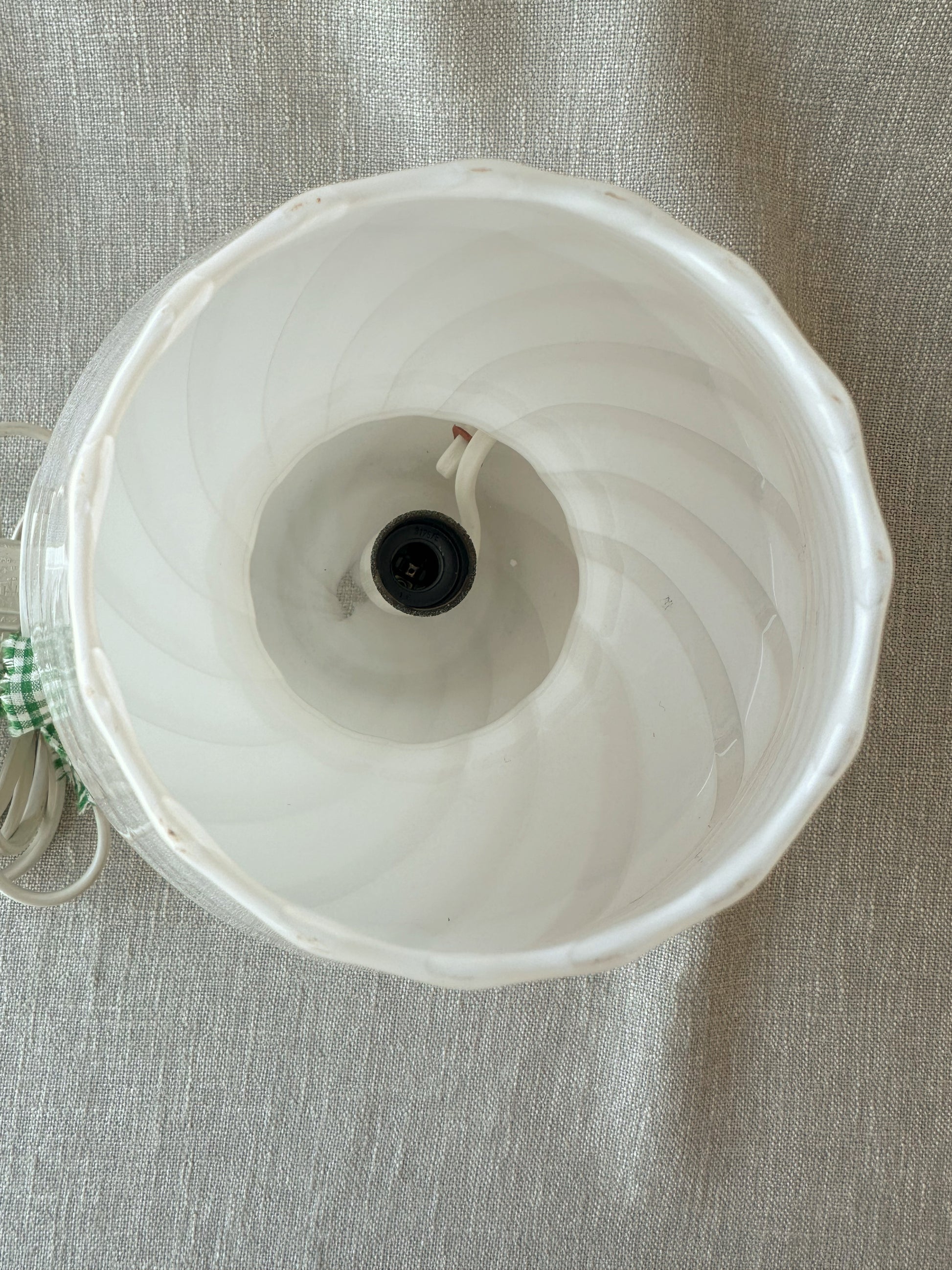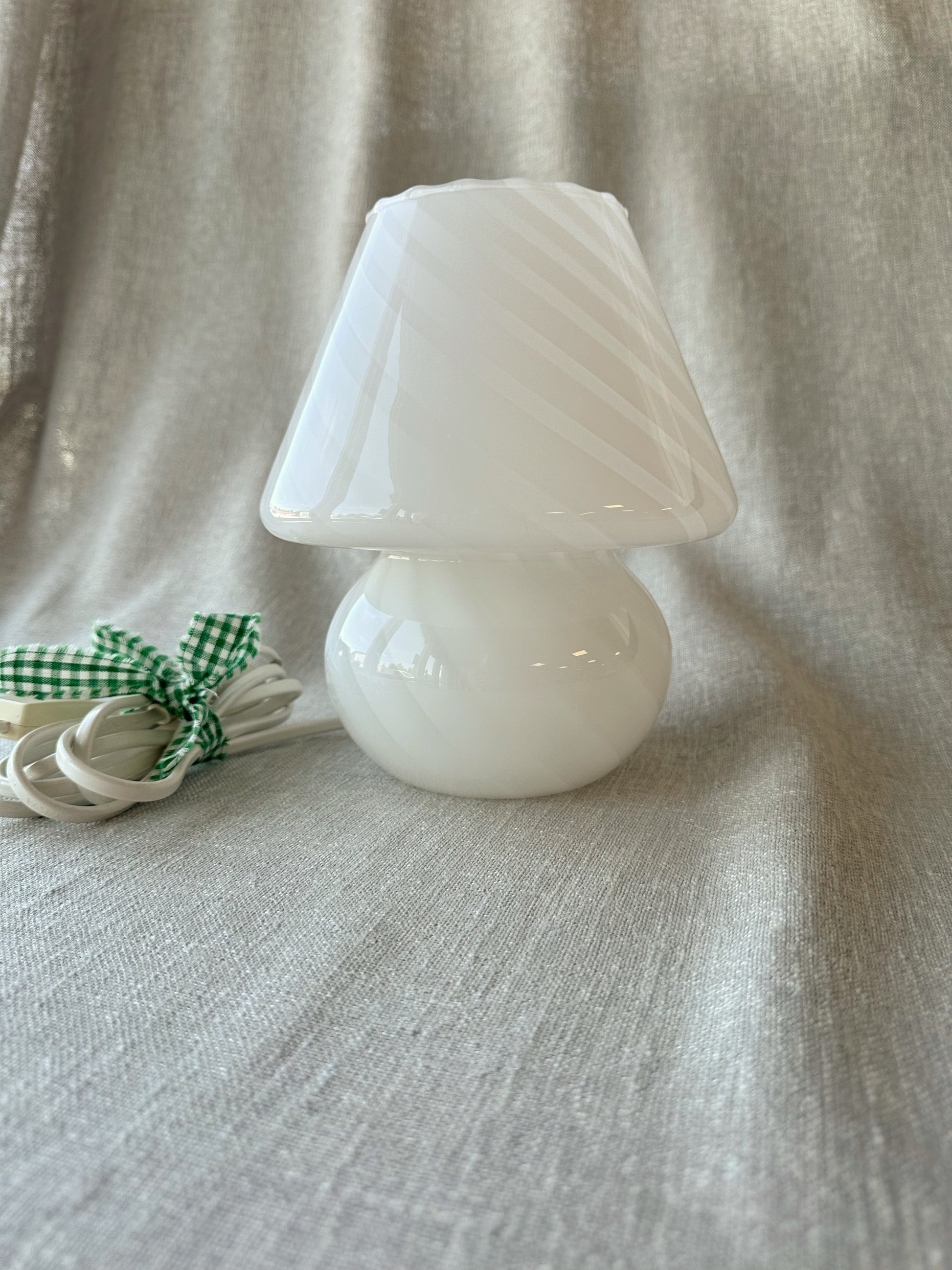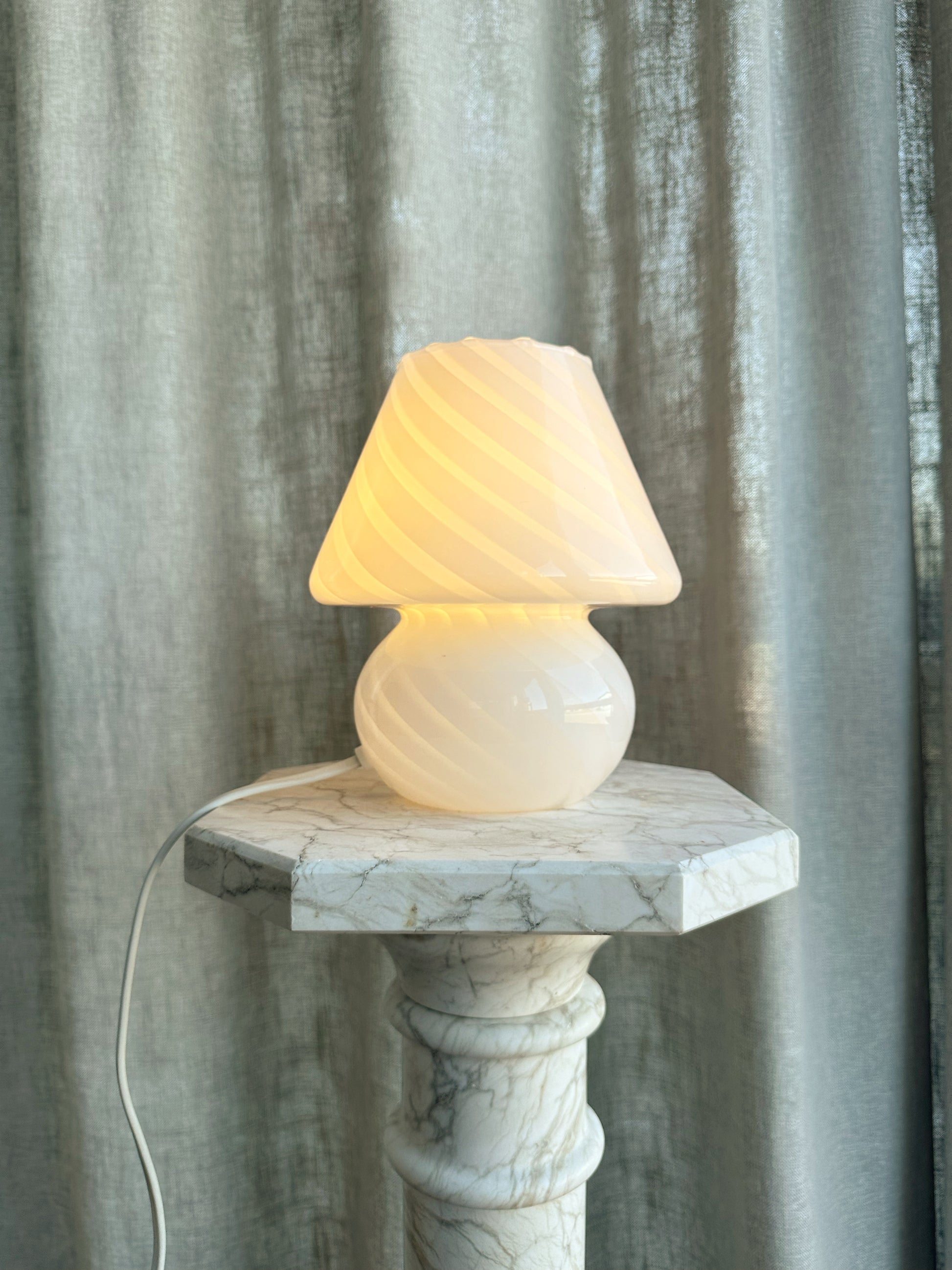 Vintage Murano swirl svamplampa - en riktig vintage klenod som inte behöver någon närmare presention. Höjden är ca 20 cm och bredden är ca 18 cm i diameter på bredaste stället. Några märken finns på överkanten av lampan, se bilder.